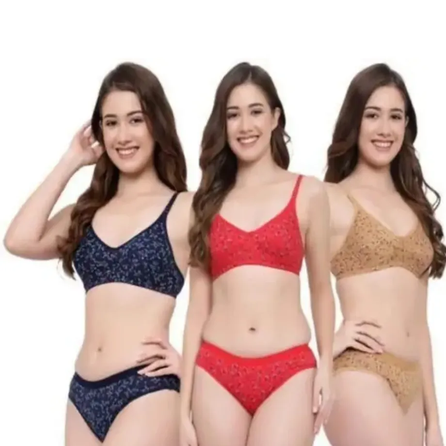 Fiore Cotton Lingerie Set – Pack of 3 (Red, Navy Blue & Mustard)